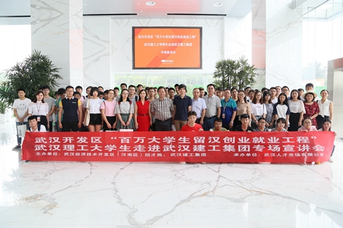 2018年6月22日,武漢開發(fā)區(qū)招才局?jǐn)y手武漢人才市場有限公司,組織百名武漢理工大學(xué)生走進(jìn)武漢建工集團(tuán)大學(xué)生實(shí)習(xí)實(shí)訓(xùn)基地現(xiàn)場觀摩。武漢開發(fā)區(qū)組織部副部長張濤,武漢人才市場有限公司總經(jīng)理肖艷、武漢建工集團(tuán)股份有限公司總法律顧問李芊等領(lǐng)導(dǎo)出席了此次活動(dòng)。